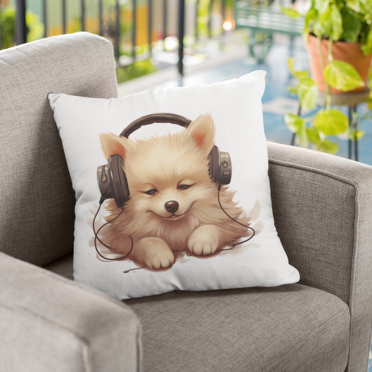 Kopfhörer Zwergspitz - Kissen 40x40cm